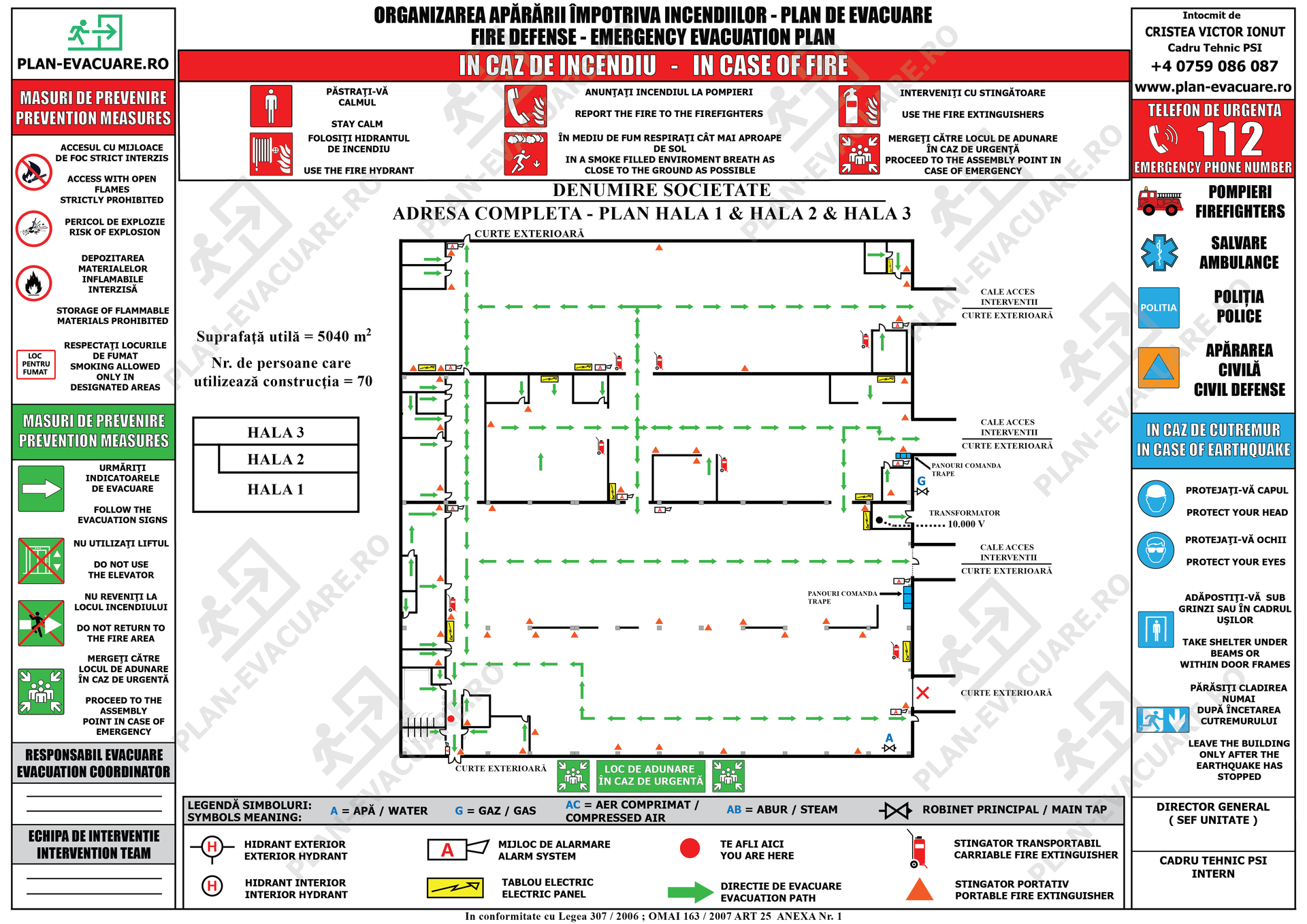 Planul de Evacuare contine instructiuni pentru evacuarea personalului, prevenirea si stingere Incendiilor, cat si instructiuni In caz de cutremur